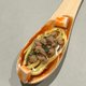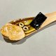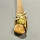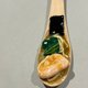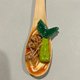 這是個用樹脂黏土製作、湯勺上盛著拉麵的吊飾。