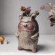 - L size High-fire flower vase. Cute character, crafted and painted by hand.