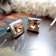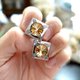 **日本中古茶色水晶寶石銀色不銹鋼袖口鈕扣 高級二手古著珠寶首飾**