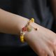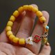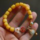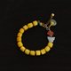天然雞油黃蜜蠟隨形 和田玉如意鎖蝴蝶設計手串衣襟掛f - 手鍊/手環 - 半寶石 黃色