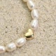 愛心鏈串起純白珍珠,象徵溫柔與浪漫,珍珠光澤柔和,襯托女性優雅魅力。