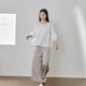PINKOI ONLY 發光小波點寬褲-隱形聲波 - 女長褲 - 棉.麻 白色