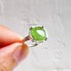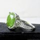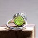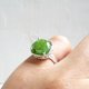 鮮やかなグリーンが目を引くペリドットを、透かし模様の台座にセッティングしました。