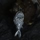 小魚吊墜,有些意象,運用比較古老的墨魚骨鑄造工藝製作,整體肌理是墨魚骨內部天然肌理的拓刻。表面肌理猶如等高線一般自然流暢。