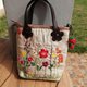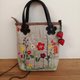 这款亚麻手工刺绣花卉包,以多彩花朵为主题,