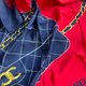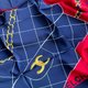 中古Chanel 近新保存品大絲巾,這條的圖案大家應該不會陌生,上面印有經典深藍Classic Flap,紅藍拼色很好配襯,連原裝包裝,超級新非常順滑的一條。這條可以裱起來放在家裡做絲巾畫,非常有特色!