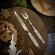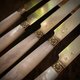 這一類珍珠母手柄搭配純銀鍍金刀鋒的組合,在當時屬於法國上流社會與貴族宴會中最高等級的餐具,常用於甜點或水果餐桌上,象徵優雅品味與身份。