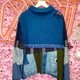 OTT獨一無二•Unique日系湖藍色織花拼格蕾絲牛仔毛衣