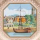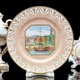 🔸盤面主景:描繪英格蘭伍斯特的塞文河畔景觀,一艘木製帆船停泊於岸邊,背景可見「Flight & Barr China Manufactory」與城鎮建築,遠處聳立著伍斯特大教堂,呈現十九世紀初英倫小城的繁榮景致。