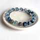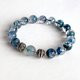 - 天然礦石 藍幽靈 . 是白色火山泥 . 溶入藍色的礦物質共生 . 礦珠呈現聚寶盆型態 . 中間主石 海藍寶 . 礦珠磨製隕石樣貌 . 用925純銀刻紋珠 點綴 . 獨特的手鍊。