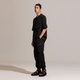 以軍裝長褲為設計主軸,穿起來十分輕盈無負擔;俐落的直筒廓形,搭配兩側工裝口袋,使整體在活動時,更加立體有層次;褲腳打褶設計,增加視覺上的份量感,能夠拉長並修飾線條比例。