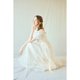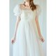 一款使用點點網紗製成的澎澎袖禮服,低調香檳色調為整體增添高雅柔美的氛圍。