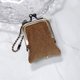小さなビーズ刺繍のがま口 No.86, キャメル×ウール, ネックレス・バッグチャームにも, アクセサリーケース, 一点物 耳環  新娘飾品 耳夾 - 吊飾/掛飾 - 羊毛 咖啡色