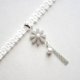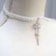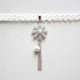 以濃郁的藍色為背景,點綴花朵和珍珠,搭配閃粉與白色線條,設計出優雅的吊墜。俐落的方形線條能讓頸部線條看起來更為修長。深沉的藏青色是秋冬季節的絕佳搭配單品。