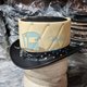 The cream-colored or black colored crown features an elegant diamond quilted pattern, offering a soft contrast against the sleek black leather brim and hatband.