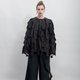 「RAVEN」系列靈感源自神話中的烏鴉——這一神秘生物在多種文化中兼具智慧、黑暗與未知的象徵意義。設計師郭瑋探究烏鴉在台灣魯凱族、北歐及希臘神話中的角色,並在本季作品中重新詮釋其形象。從羽毛的流動、骨架的結構到展翅瞬間,每一個細節都蘊含深厚文化底蘊,帶領觀者進入智慧與神秘交織的時尚對話。
