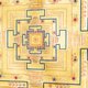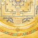 - 曼荼羅的複雜幾何設計被精心描繪,圓圈、方形、三角形和其他圖案象徵著宇宙的各個方面。