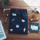 - 可以放下A5的筆記本的大束口袋 可以當作文具袋放手帳跟文具 也可以當作旅行用的收納袋