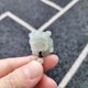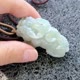晴偏綠,背部有一些黃色跟果綠的飄花,左後腳底也有顆似胎記般的深綠飄花,吻部嘴型的風格比較方正,厚重有份量的感覺。