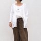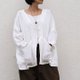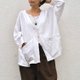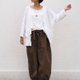 身幅、袖周り共にゆったりしていますので、中に着る物を選ばずに重ね着ができます。サッと羽織ってお袖をラフに折り返して崩して着ても、かわいいです。