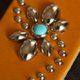 ●目を惹くターコイズはアメリカのアリゾナ州の著名な鉱山、キングマン鉱山から産出された良質なキングマンターコイズです。ネイティブアメリカンジュエリーでは馴染みのあるターコイズで発色の良さや希少性から人気が高いものです。このターコイズの7mmを5個使用していますのでかなりの迫力です。