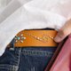 ●ベルトの革は栃木レザーの植物タンニン鞣しのサドルレザー。オイルを含ませた上質の革です。色は8色(ナチュラル、ブラック、ブラウン、ダークブラウン、オーカー、レッド、オレンジ、ネイビー)からお選びいただけます。