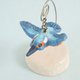 本作品は、カワセミに触るとプラプラと可愛く揺れる、吊り飾りタイプの置き物です。