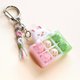 - 兔兔三色菓子禮盒&花花繩結鑰匙圈,菓子靈感來自日本花見糰子,有手織繩結花花吊飾,還可以加上英文名字,是充滿了溫柔元素的可愛掛飾喔~