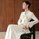 - 新中式復古中國風 鏤空針織紋理蝴蝶結系帶長裙