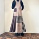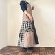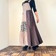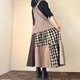 ブロックチェックのパッチがアクセントになり、裾に向かって広がる美しいシルエットが動きに合わせて表情を変えます。