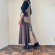 ・濃いブラウンスカート:綿65%、毛32%、ポリウレタン3%
