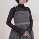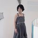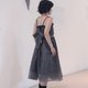 訂製 灰色條紋拼接紗裙 細肩帶 綁帶洋裝