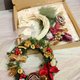 乾燥松果與橙片環繞成圈,以紅花與金果點綴節慶氛圍。