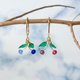 撞色小櫻桃水晶樹脂垂鍊耳環耳夾 無耳洞適用