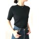 太いリブが特徴的な衿ぐりもあまり深くせず、袖丈も肘上ぐらいまでの4分袖ですので、カジュアルになりすぎず、大人の女性にピッタリなTシャツです。