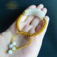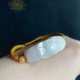●天然緬甸玉翡翠白翡帶黃翡蓮花手牌 尺寸約3.9x1.25x1cm