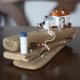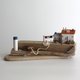 流木、ねじ・釘(赤錆加工)、ホワイトウッド(欧州スプルース、ドイツトウヒなど)、ステイン、ペンキ等で製作。ヤスリでダメージ感を演出しています。「潮騒とカモメの鳴き声、風の音」を感じていただければ幸いです。
