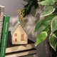 此小房子鋼筆插花器為湖水綠屋頂+中文字 / 一起美好。