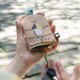 - 造型鑰匙包,厚質布料,內有鐵環可收納鑰匙,底部有拉鍊,也適合裝零錢或交通卡。