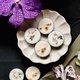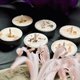 以白柯巴及皇家綠乳香磨粉後,與鳶尾根粉混合鋪底,最後鋪上雪松粉及接骨木花。