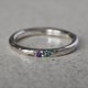 今回はシルバーの槌目リングをベースにアメジストとエメラルドを組み合わせて制作を行いました。神秘的な二色の色の組み合わせが心を落ち着かせてくれるような気がします。