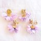 ふんわりとしたシフォン素材のタッセルとスワロフスキーを合わせた可憐なイヤリング/ピアスです。