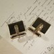 Christian Dior CD DIOR 迪奧 不鏽鋼 髮絲紋 鍍金袖扣 附原盒