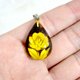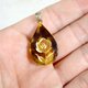 **琥珀色水滴型玫瑰花雕刻頸鍊項鍊吊墜 日本高級二手古著珠寶首飾**