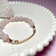 12顆粉色水晶打造出純潔美好的氛圍,直徑4~5mm的天然淡水珍珠則以一己之力點綴出美好的純白意象,加之香檳色的配件和通透的石榴石,呈現出美好的粉色系炫彩手環,紗織小姐用珠寶彈力線連接,長度約16-17cm,就這樣圍繞在你的腕間,讓你在舉手投足之間隱隱露出溫柔的精緻感。