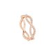 兩條交錯的曲線,共同譜出一段永恆之焰。永恆之焰戒指 以18K玫瑰金打造無限符號造型,密鑲鑽石如火光閃耀,象徵愛與承諾的不滅連結。