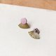 雙面貼合皮革包覆耳針,下方搭配黃銅墜飾。