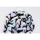 The design showcases a black base with a vibrant, multi-colored pastel cat print.