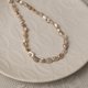 2. 低調優雅: 將扣環藏於頸後,項鍊回歸經典的珍珠串鍊造型,珍珠間的金色點綴則散發出低調的奢華感。