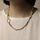 這條項鍊最大的特色是其多功能的金色雙環扣。這個富有雕塑感的扣件,讓您能自由切換兩種風格: